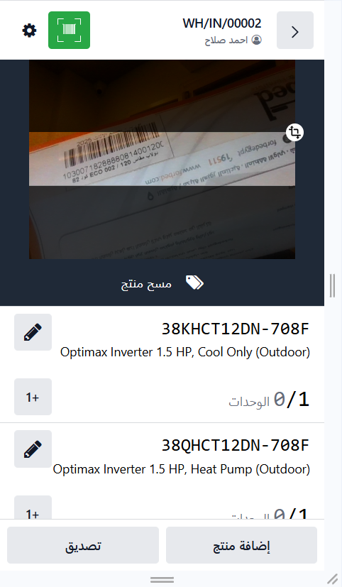 عند استلام الأجهزة من الموردين أو تحويلها بين الفروع، يتم استخدام تطبيق الهاتف المحمول المدمج مع النظام لمسح الباركود أو السيريال مباشرة، فيتم تأكيد الاستلام لحظيًا وتحديث الكميات في المخزون دون أي إدخال يدوي.
