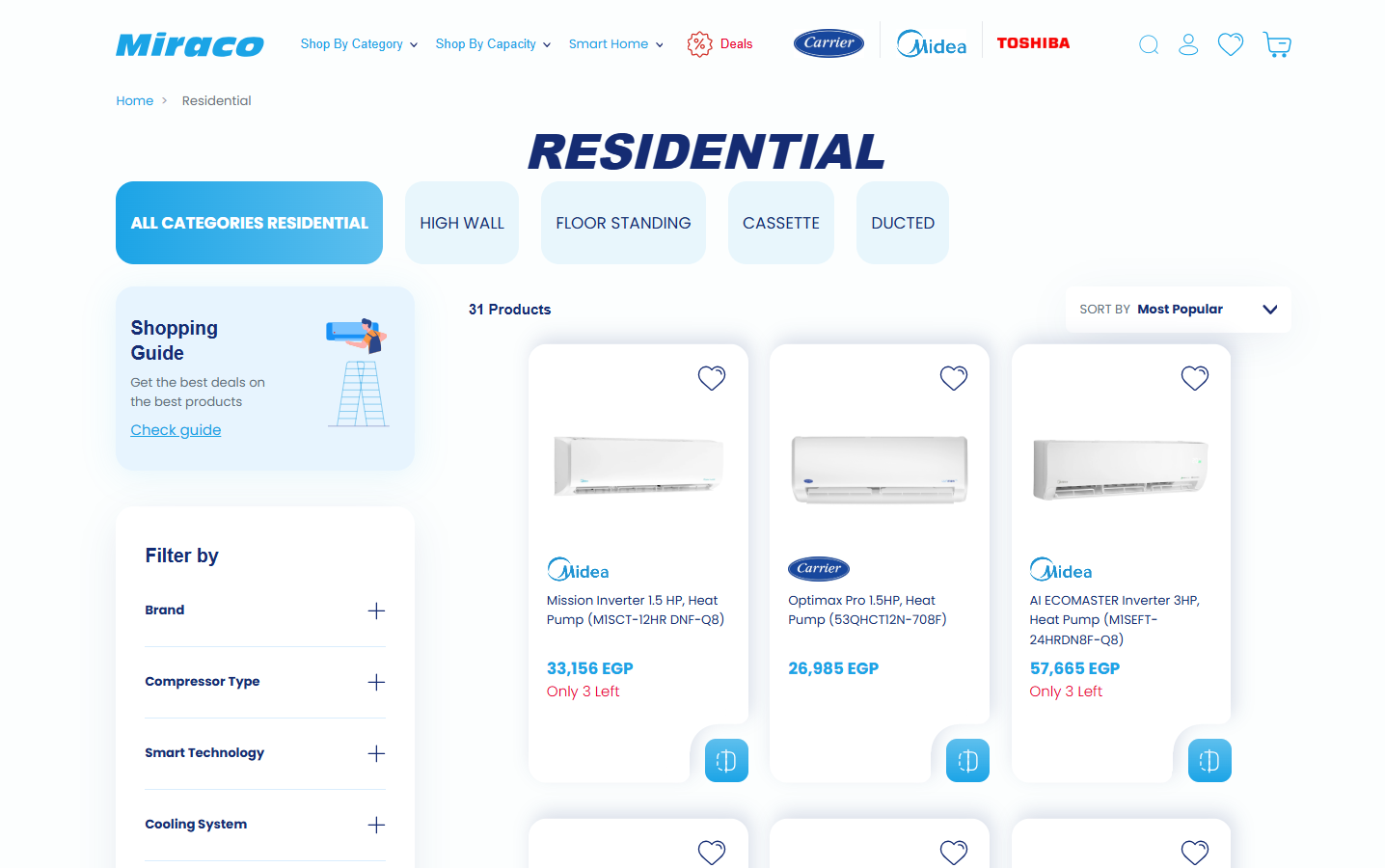 النظام مزوّد بواجهة ويب سايت احترافية متكاملة، تعرض كل الموديلات بفلترة متقدمة حسب: النوع، القدرة، نظام التشغيل، والماركة.