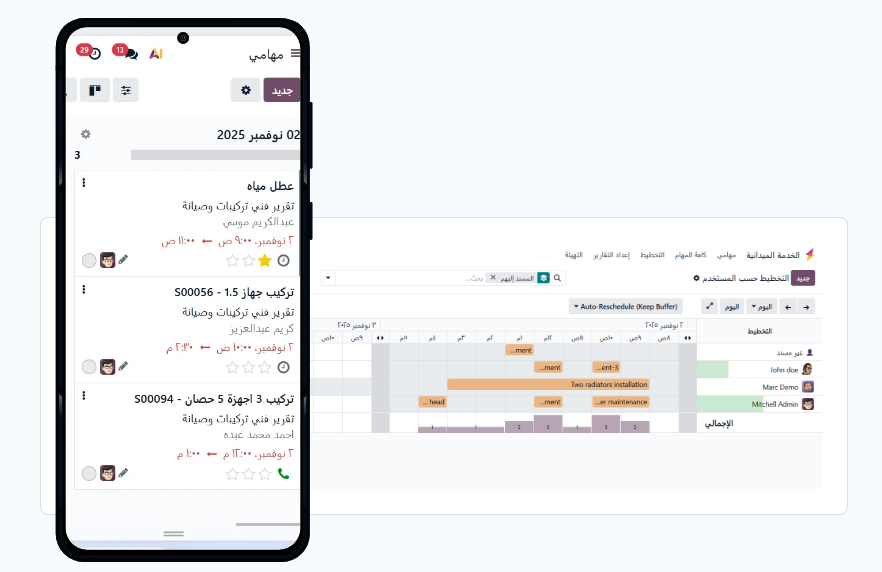 تم تفعيل نظام Field Service الميداني لإدارة الفنيين بكفاءة: كل فني يتلقى مهامه اليومية عبر تطبيق الهاتف متضمنة العنوان، الموعد، وبيانات العميل.